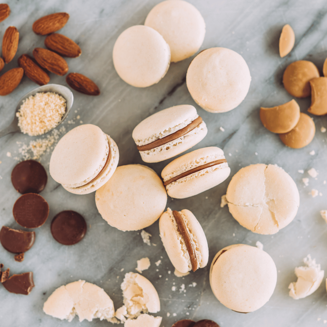 Et si on apprenait ensemble à réaliser les célèbres et élegants macarons ? Apprenez à réussir à coup sûr vos macarons avec la technique de la meringue française. Associez une belle coque croquante à l’extérieure et fondante à l’intérieur avec une ganache chocolat aux notes subtiles de biscuit et de caramel. Vous allez craquer de plaisir et faire des heureux, c’est certain.